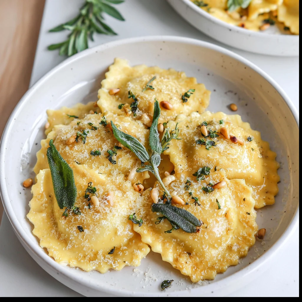 Step 4: Plate the ravioli and spoon the remaining butter and sage over the top.